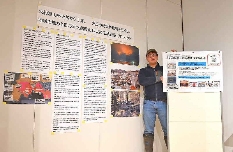 伝承施設の開業は、火災の記憶が風化していく中で、被災した綾里に発信の拠点をつくることで「山火事被害の再発を少しでも防ぎたい」という思いから計画。市大規模林野火災の発生以降も、全国的に山火事が多発している現状を踏まえ「個人的な伝承活動で終わらせてはいけない」とプロジェクトを立ち上げた。
