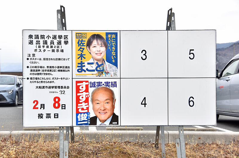 佐々木氏は、宮古市議から転身して初の国政選挙に臨んでいる。気仙では新顔で、手取り増やこども・若者・女性・多様性にかかる政策などを訴えながら、国民民主をはじめ、今回は選挙区への候補擁立を見送った中道改革連合など非自民層、無党派層への浸透を図る。
