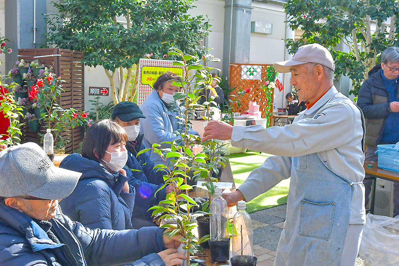 大船渡市末崎町の世界の椿館・碁石で8日、三陸・大船渡第29回つばきまつりの一環としてツバキの栽培講習会が開かれた。多くの花々が見頃を迎えた館内で、参加者がお気に入りの品種や花付きのツバキを育てる接ぎ木の方法などを学んだ。