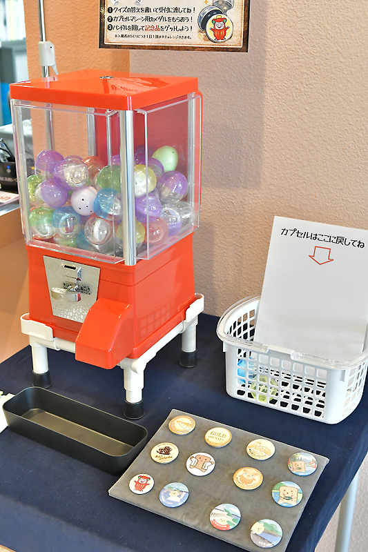 館内では、展示にちなんだ「クイズチャレンジ」も。正解すると、カプセルトイのハンドルを回し、プレゼントを入手できる。