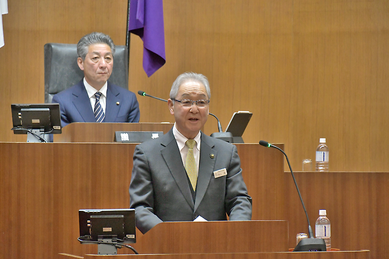 引き続き、小松伸也教育長が所信表明演述に臨んだ。新年度から中学校運動部の休日活動が地域クラブに移行することへの円滑な推進に加え、第2期となる市立小・中学校適正規模・適正配置計画基本計画の策定に向け、保護者や関係者と協議を進める方針などを示した。