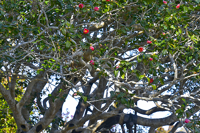 3月に入り、厳しい寒さも緩みつつある中、大船渡市末崎町にある県指定天然記念物「大船渡の三面椿」の開花が進んでいる。市内では26年ぶりとなる全国椿サミット大船渡大会を14日(土)、15日(日)に控え、三面椿は視察コースにも組み込まれており、歓迎ムードの高まりとともに彩りが増えていきそうだ。