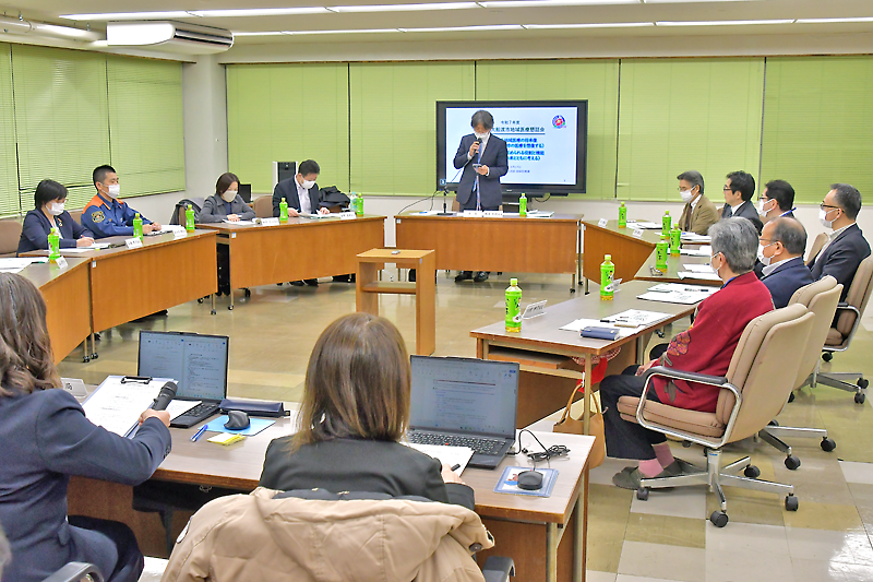 議題のうち、「当市における地域医療の将来像」では、事務局の市市民生活部国保医療課が人口減少や少子高齢化の影響を解説。地域医療や福祉・介護面の各懸念点も示した。