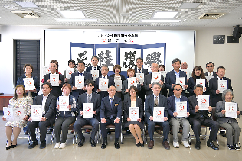 県による「いわて女性活躍認定企業等認定式」は18日、釜石市の釜石地区合同庁舎で開かれた。県内では、令和7年9月~今年2月に気仙の41社を含む企業や団体など110社が「いわて女性活躍企業等」のステップ1と2に認定された。式には気仙などの認定企業が出席し、社内での女性活躍に向けてさらなる取り組みの推進を誓った。