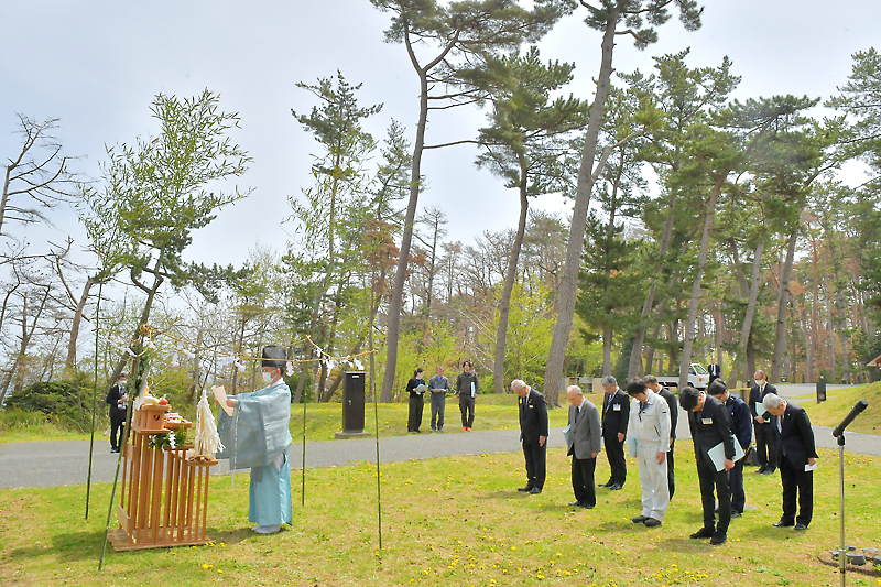 大船渡市末崎町の三陸復興国立公園内にある碁石海岸キャンプ場の安全祈願祭は23日、同キャンプ場内で開かれた。本年度も海と松林に囲まれた環境を生かしてアウトドア需要などに対応するほか、外国人利用も歓迎。ゴールデンウイークには多くの予約が寄せられている中、関係者は本年度の幅広い世代の利用やにぎわい創出に期待を込めた。(佐藤 壮)