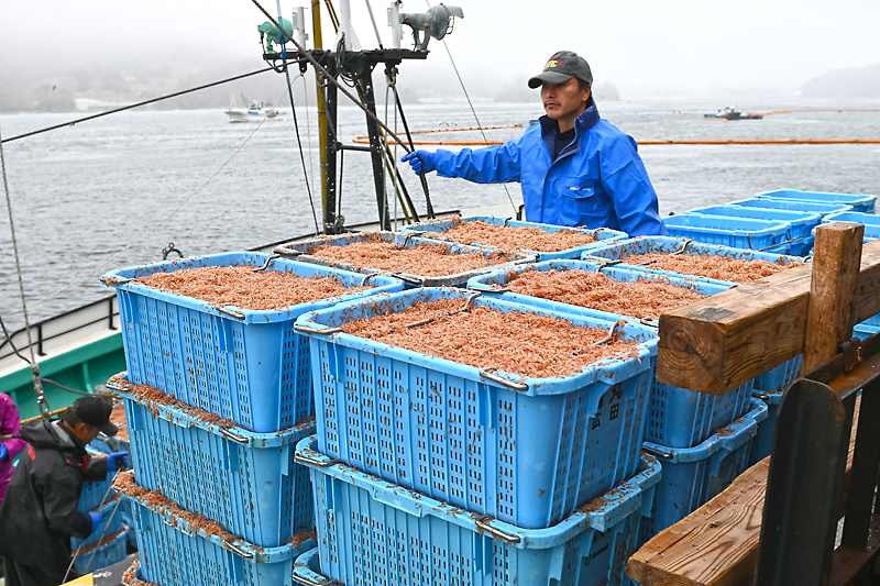 イサダはツノナシオキアミの別称で、主に養殖や遊漁の餌として流通。例年2月下旬から3月上旬に漁解禁となり、漁況次第では4月末ごろまで水揚げが続く。県内では食用やサプリメント商品としての利活用も進んでいる。
